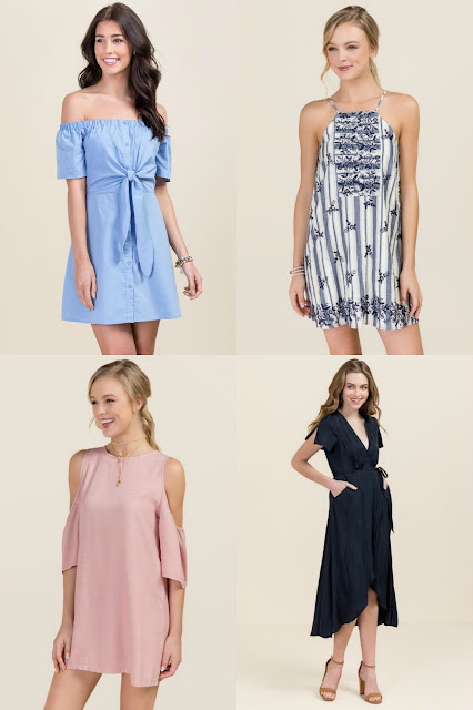 {Great Spring pieces to kickstart your wardrobe with! I also wore the off-the-shoulder shift dress on our honeymoon and it is insanely soft and comfortable!}